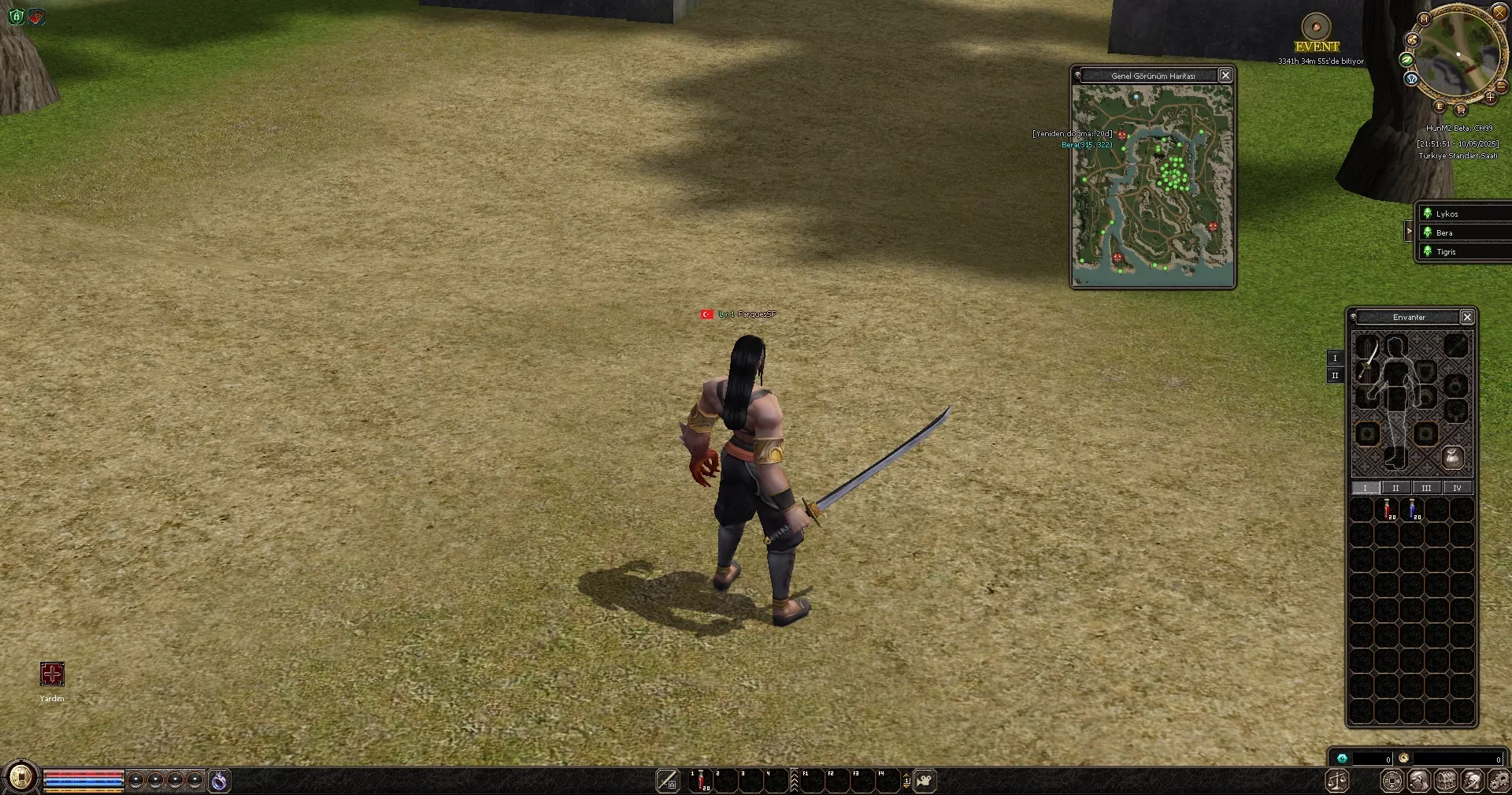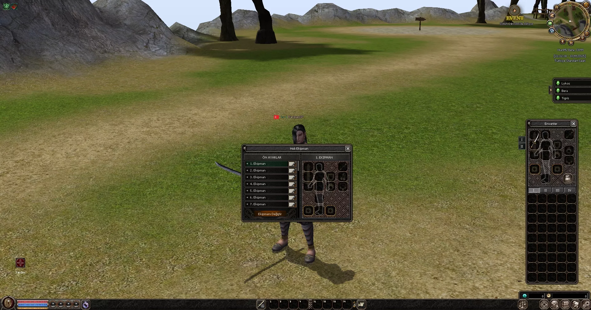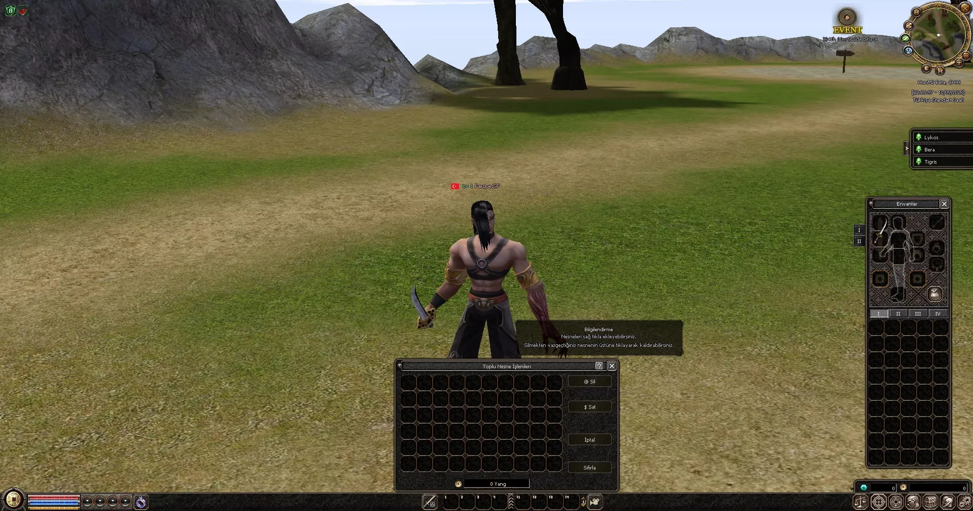 Oyuna başladığınızda 1.seviye efsunlu itemler karakterinizin üzerine giyili olarak başlar