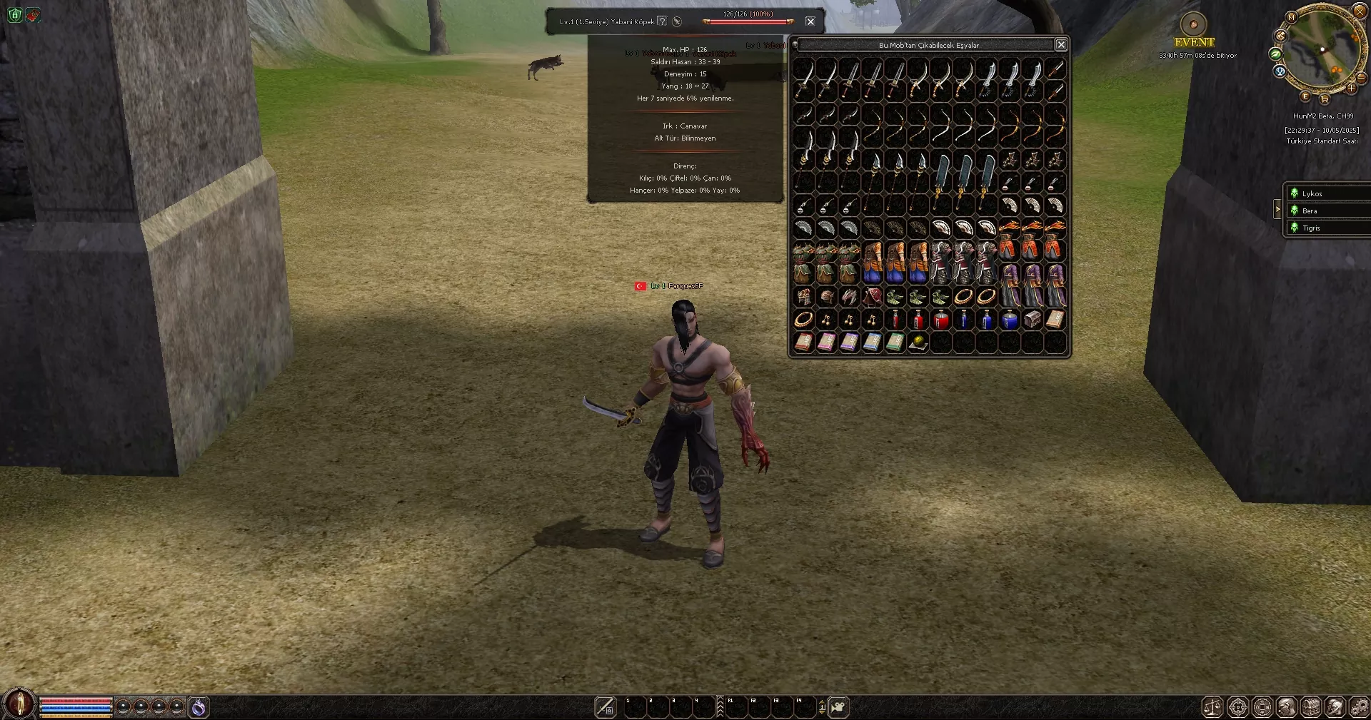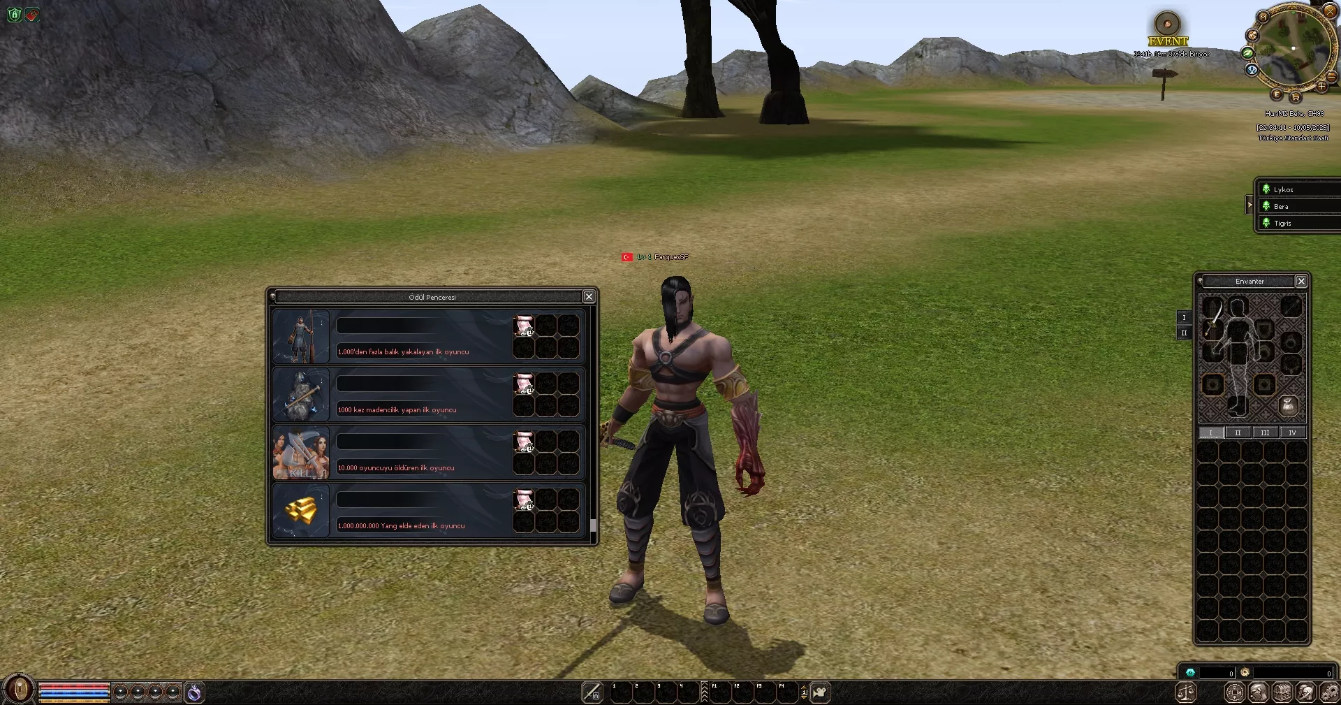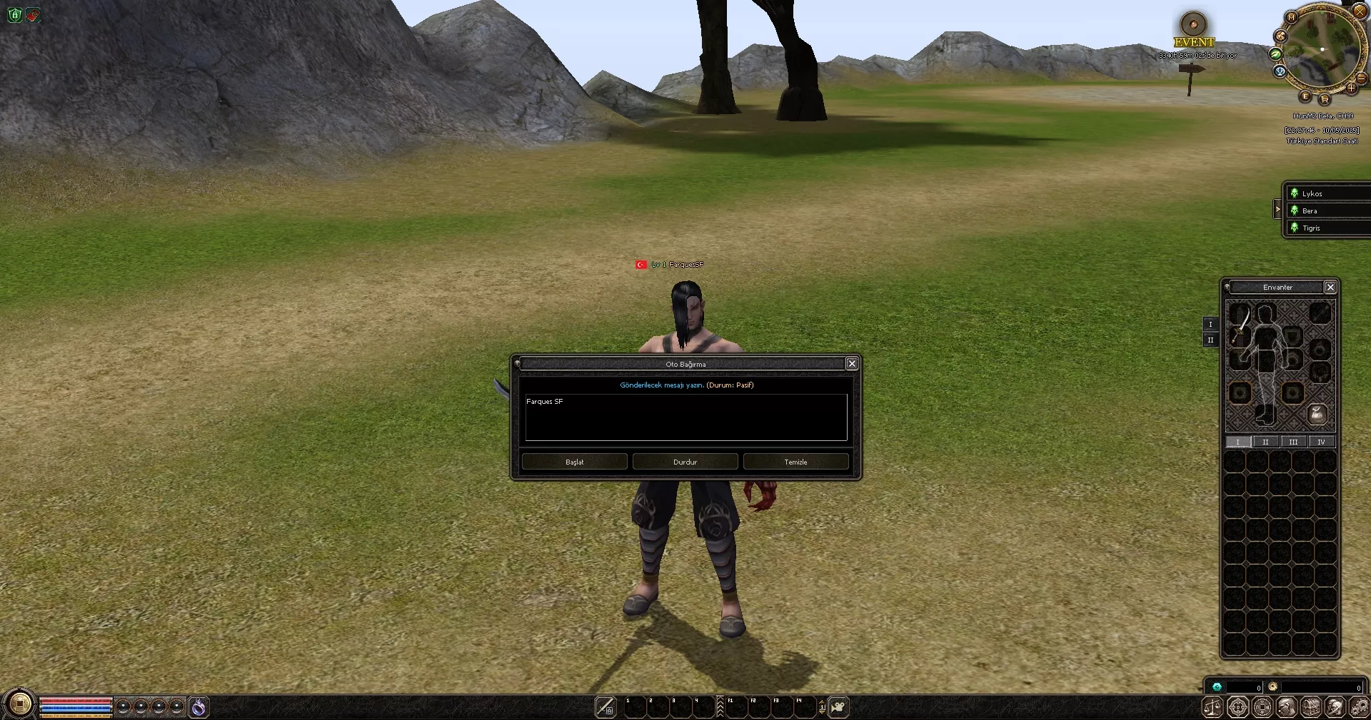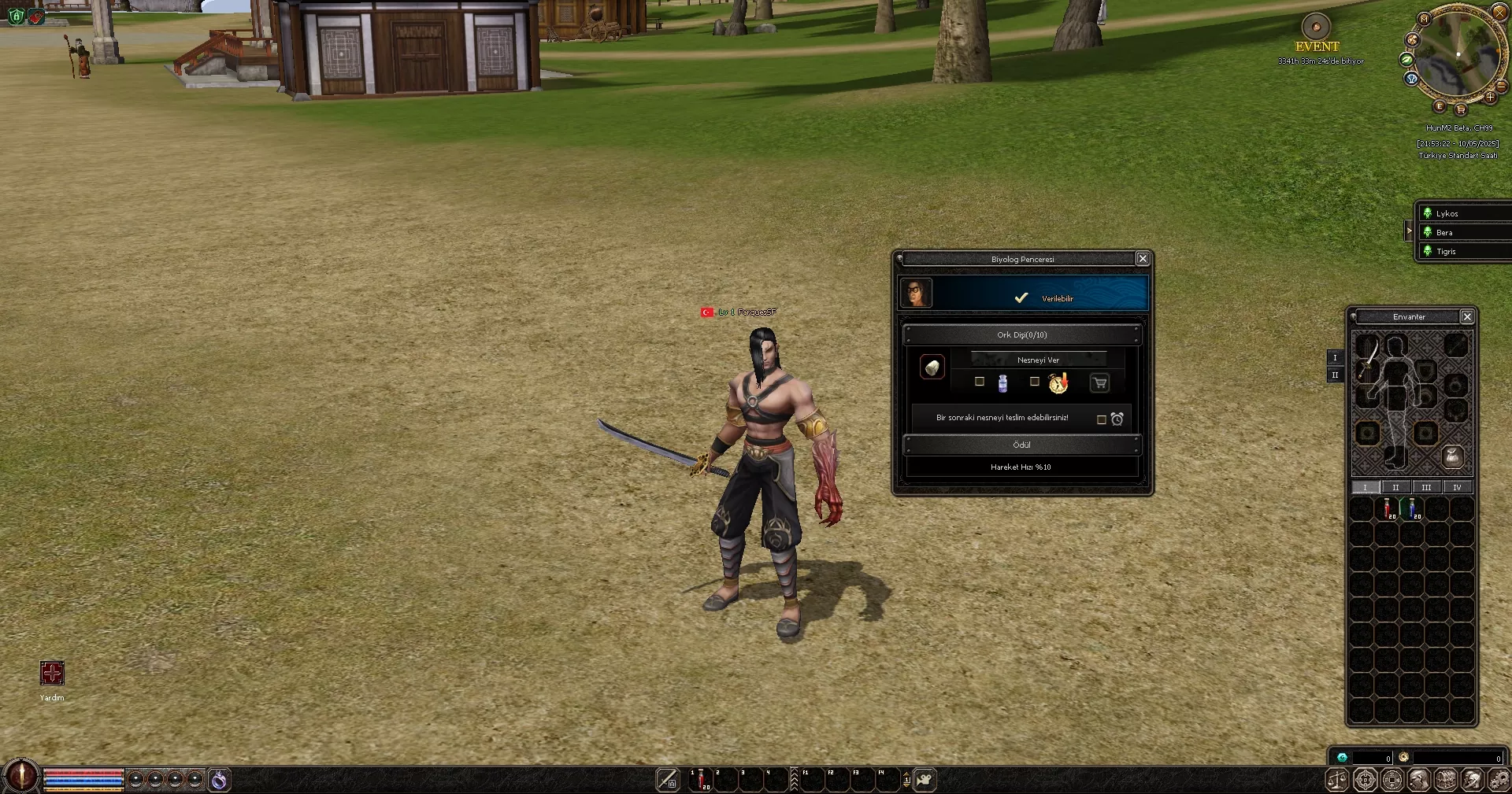 Oyuna başladığınızda 1.seviye efsunlu itemler karakterinizin üzerine giyili olarak başlar